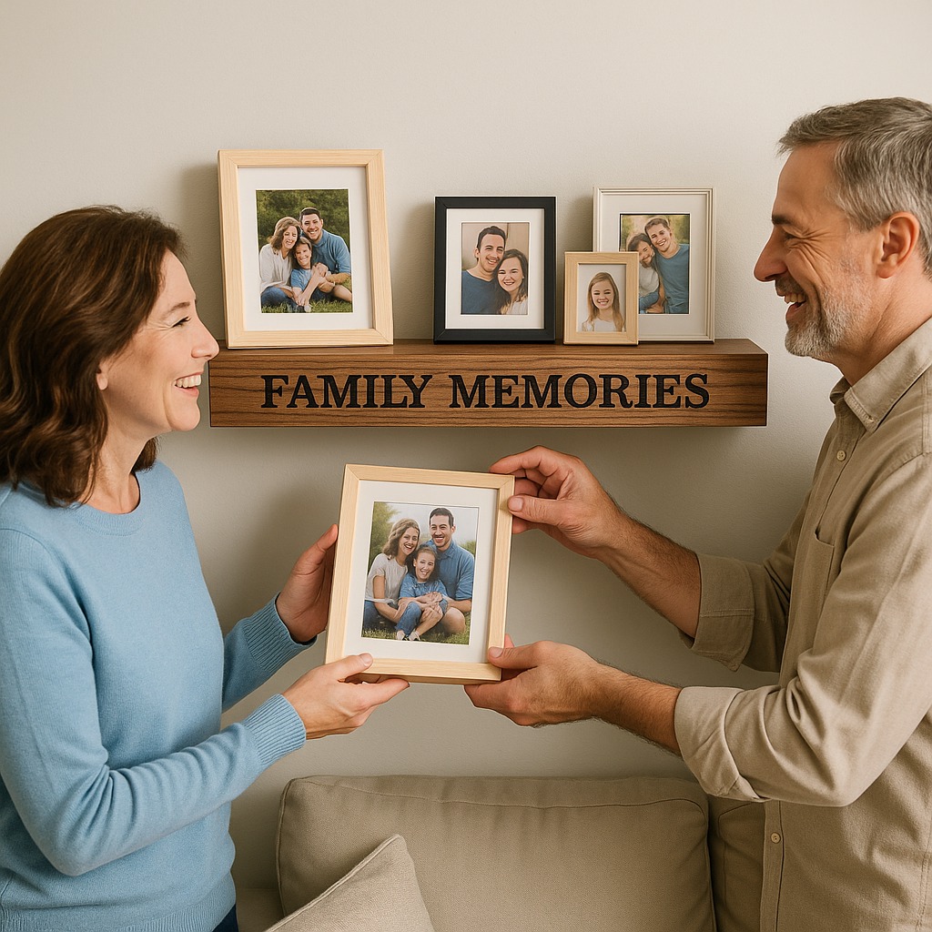 Add initials, a date, or a meaningful phrase to your shelf.